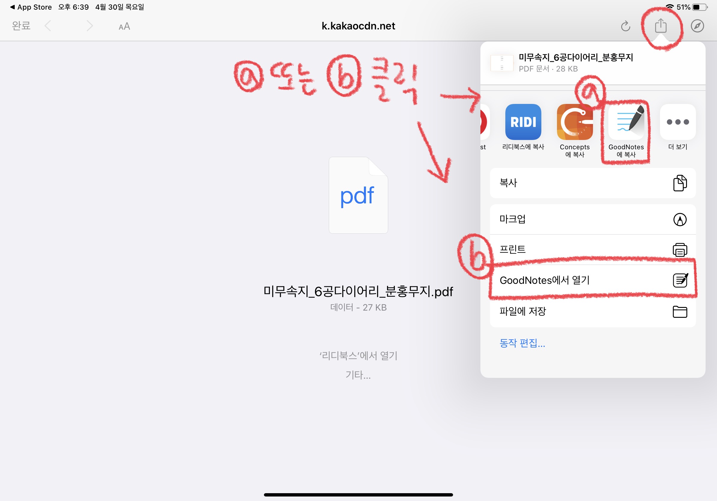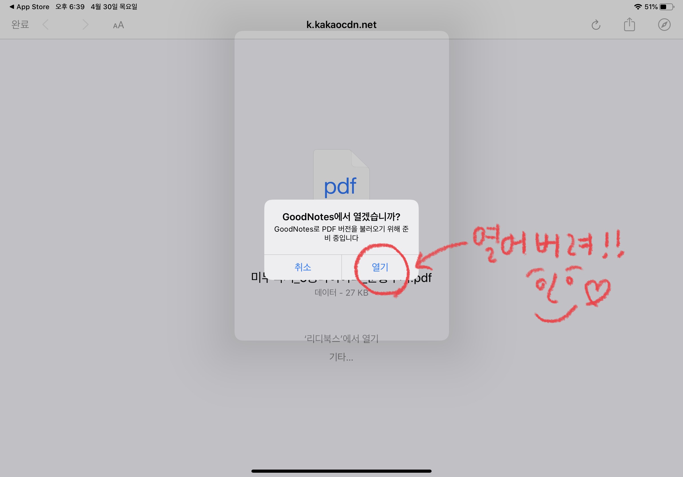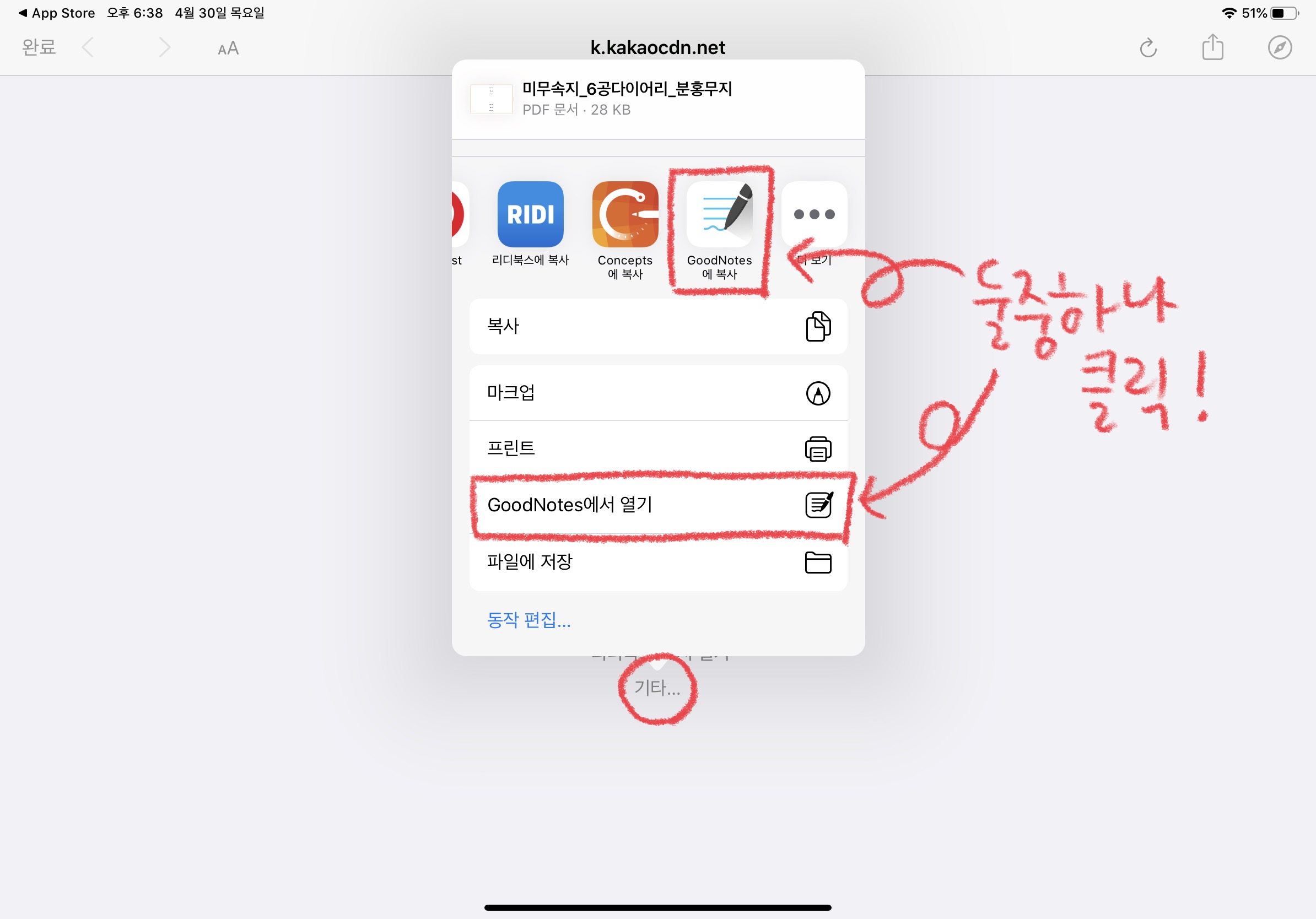 또는 아래 부분에서 'goodnotes에서 열기'를 눌러주세요~!