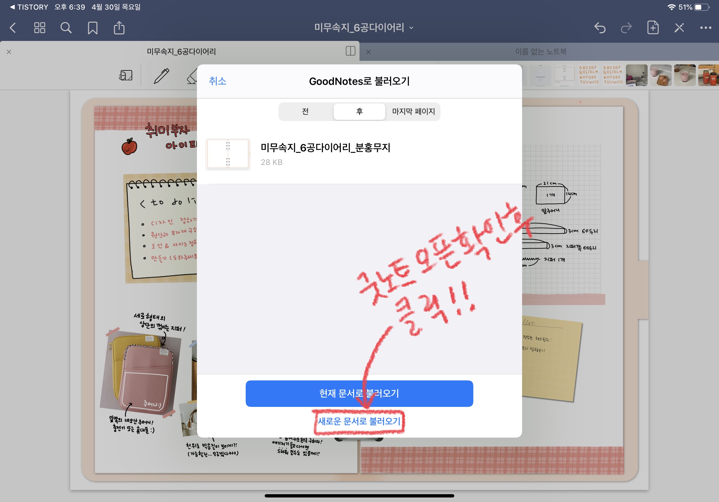 블로그 무료공유 PDF 속지~ 아이패드 굿노트에 저장하는 방법!!